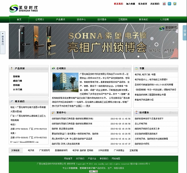 廣西北海圣安時代科技有限公司是電子鎖、指紋鎖、密碼鎖專業生產廠家,公司專業致力于指紋鎖、密碼鎖等智能家居系統產品的研發、生產、銷售與服務。
