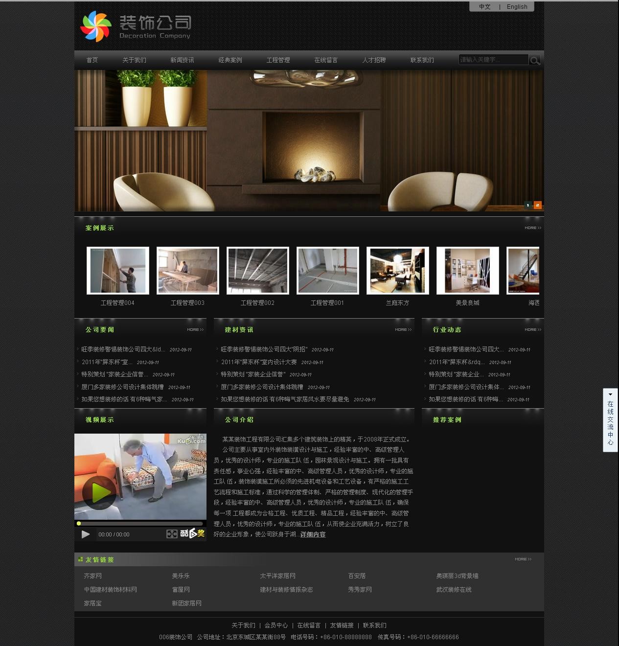 自公司成立以來,近年來承接設計施工的工程有:市政府辦公大樓衛生間改造、寶韻幼兒園、金鳳凰小區大堂、電信大樓、長城花園大酒店、文化宮小吃城、威格雙 語幼兒園、老廚房酒店、特一號售樓部等。這些工程依靠優秀的設計、精湛的施工技術、先進的設備及員工高度意識贏得了業主們的信賴和行業監理部門的好評。